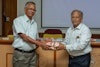 He started with the over view of Radios on modern aircrafts and then he touched upon frequencies used in VHF/HF modes such as AM/SSB and Data mode using VHF and Satcom. He explained about ATIS, Towers, Radar and emergency frequencies in different ground stations like Chennai, Mumbai, Kolkata etc. He also exhibited layouts of controls in A320 cockpit. He enlightened the audience about the types of antennae used and their locations in the aircraft. He also spoke about the effect of lightning, static electricity and associated problems. The presentation highlighted the communications between the aircraft, towers and other stations during approach, landing and taxi-ing of the aircraft. All the slides were very informative and the participants enjoyed the presentation. Finally, the President, OM Thyagu, presented a memento to OM Sampath.